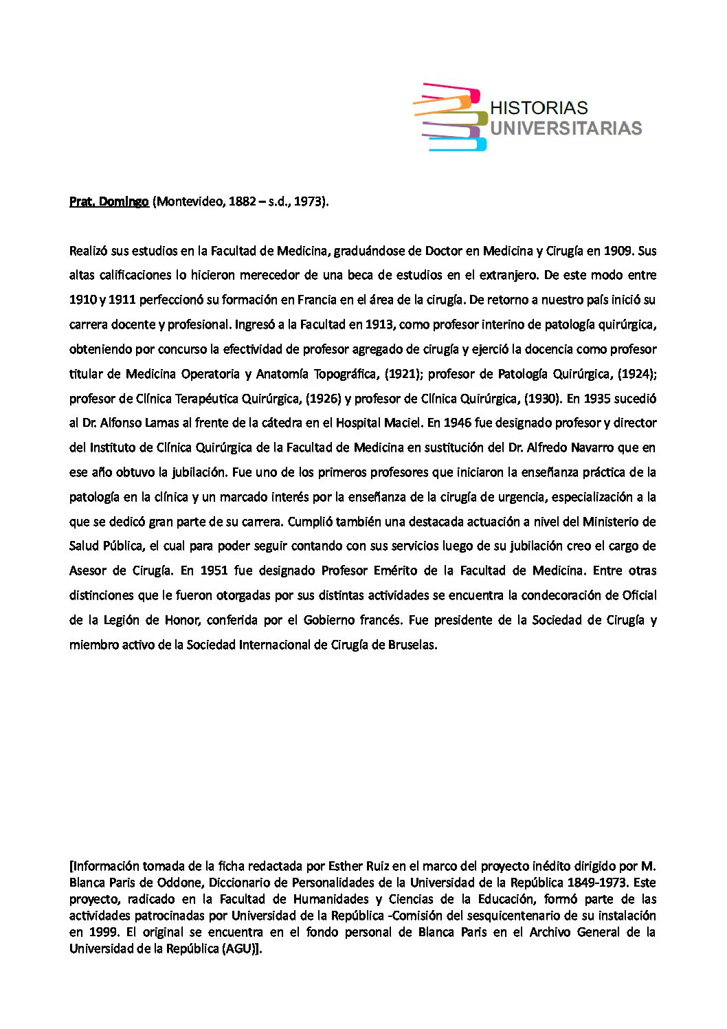 Patología de las vías biliares estudio clínico, diagnóstico y tratamiento de las afecciones de las vías biliares. Montevideo: A. Barreiro y Ramos, 1946. Disponible en http://www.biur.edu.uy/F